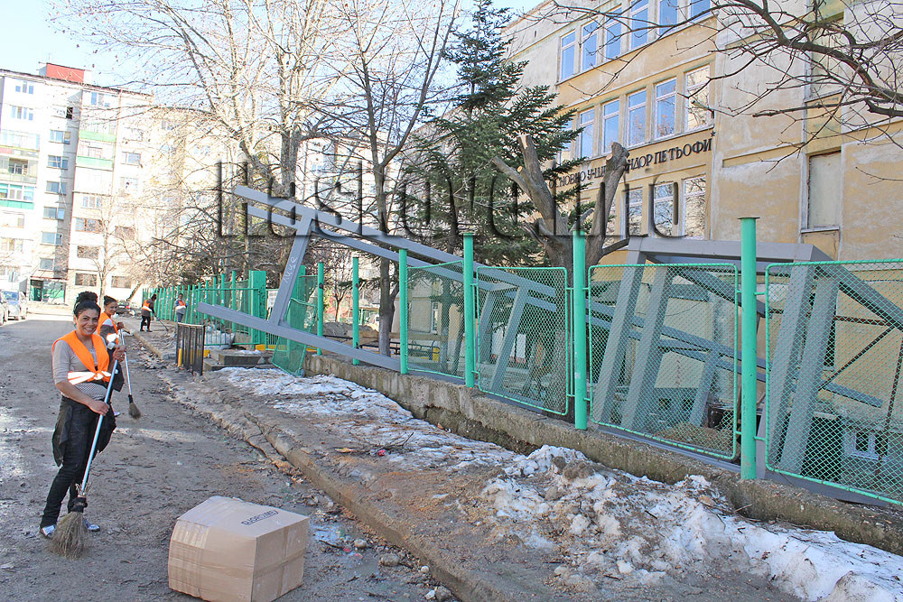В същото време ремонтът в ОУ „Св. Иван Рилски“ продължава по стаите, а тепърва се изгражда скеле от източната страна на сградата.