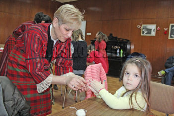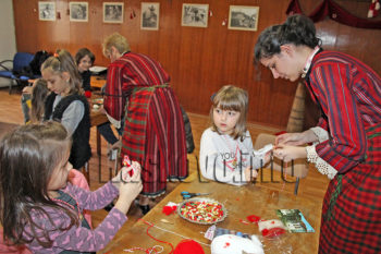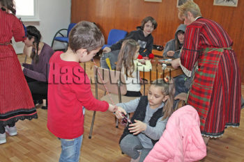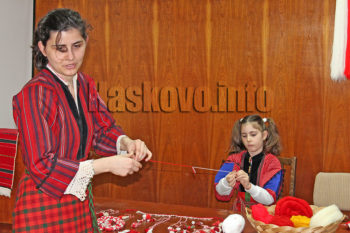 От музея бяха осигурили материалите, необходими за изработката на една мартеница – вълнени конци, дървени мъниста. На децата помагаха етнографите в музея Диляна Пецова и Маргарита Цветанова.