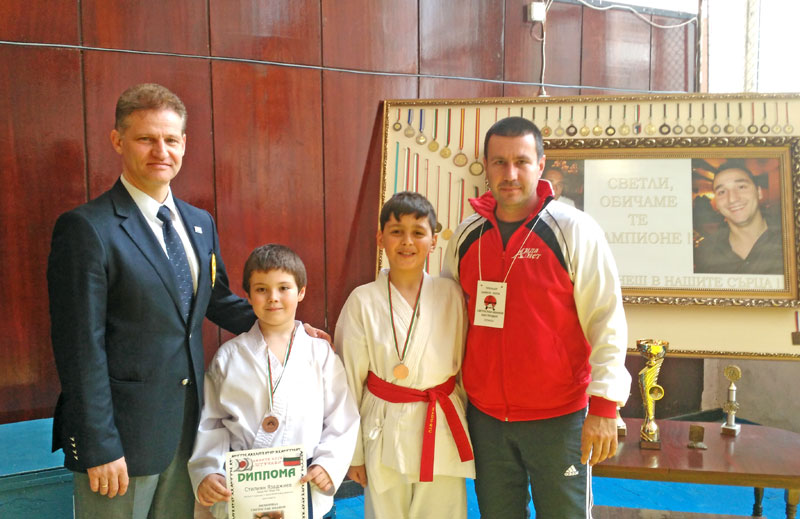 Стилиян Язаджиев (6-7 г.) спечели бронзов медал на ката индивидуално, а пети на кумите при 35-килограмовите се класира Владимир Ковачев (8-9 г.).