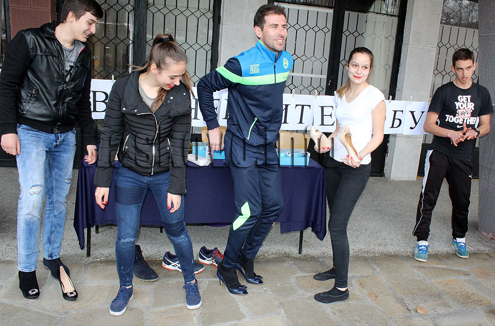 Малцина приеха предизвикателството, но пък забавлението бе 100-процентово. Най-атрактивната част бяха опитите на момчетата и мъжете да стъпят в дамски обувки с токове.