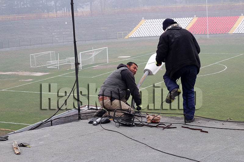 Строително-ремонтните работи на официалния терен на стадион „Хасково“ обхващат оформяне на коренова зона, изпълнение на дренаж и автоматична поливна система. За целта ще се изпълнят изкопни работи, подравняване с лазерен грейдер на основата и последващото й уплътняване преди полагането на дренажните тръби. По оформянето на кореновата зона ще бъдат извършени: доставка, полагане и подравняване, както и уплътняване на същата с лазерен грейдер. Ще се достави професионално сертифициран спортен чим за интензивно натоварване. Същият ще бъде лазерно подрязан в момента на изваждане, с вградена ПВЦ мрежа за здравина. Ще се извърши и наторяване с разтворима гранулирана тор. Кореновата зона трябва да съдържа 75% селектиран пясък и 25% хумус и органични вещества.