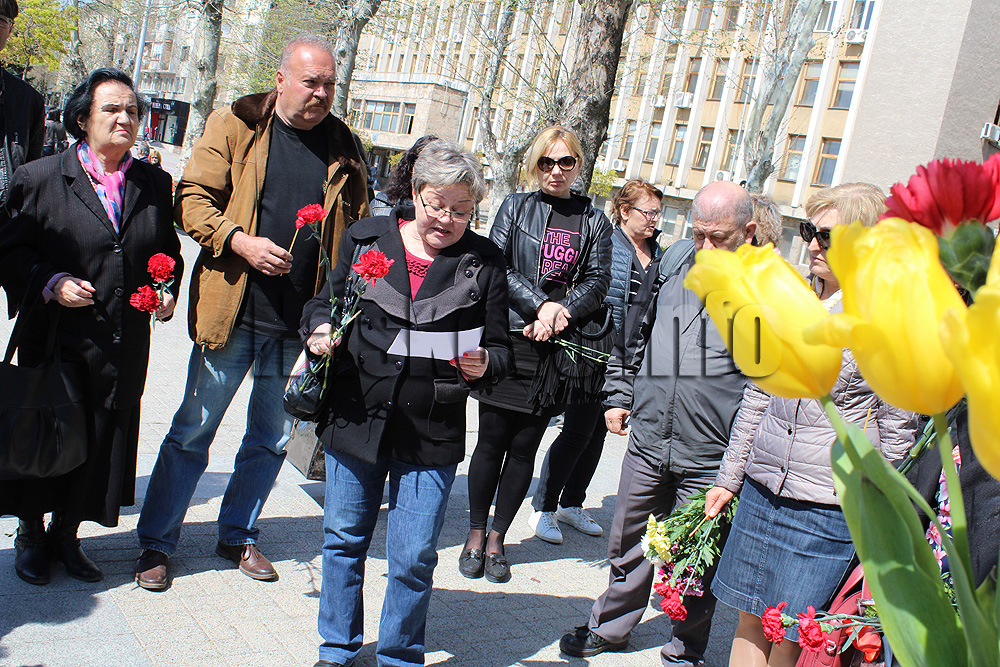 Това стана с минута мълчание и поднасяне на цветя на паметната плоча Бреза на мира в чест на 60 г. от Деня на победата. 14 са жертвите на атентата, над 50 са ранените.