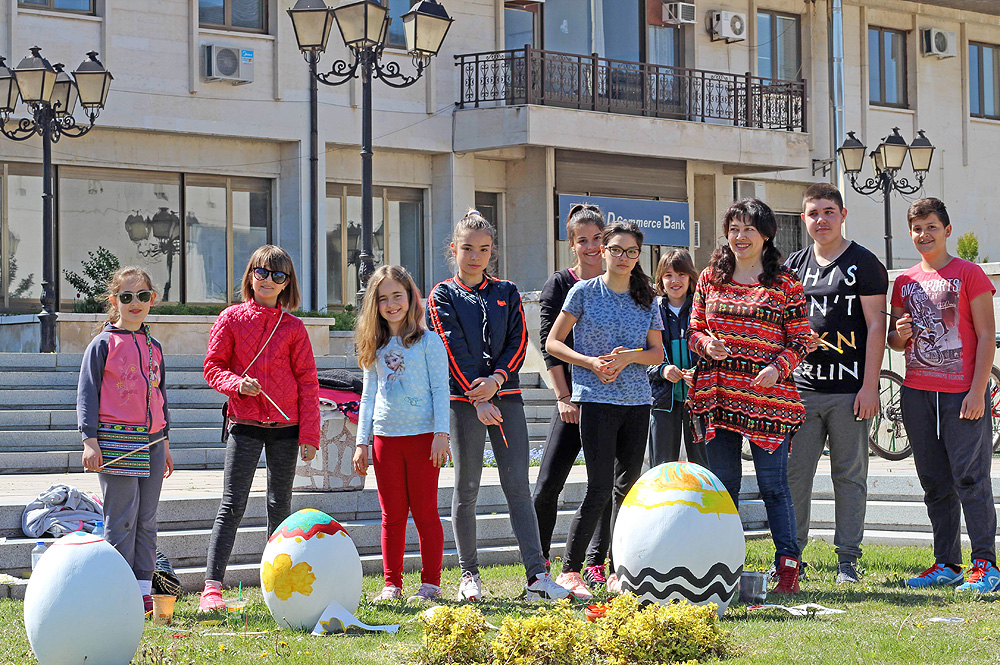 Празничната украса на града и тази година e с гипсови фигури на великденския символ – яйцето, които изрисуваха възпитаниците на художничката Ивалина Недева. Творенията на младите таланти в най-различни цветове и шарки могат да се видят пред сградата на кметството и в зелената площ на централния булевард „България”.