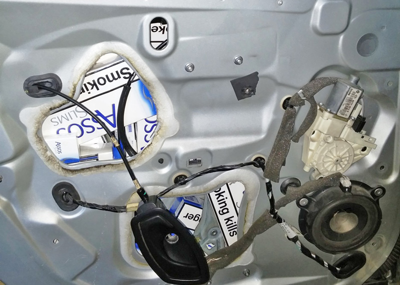 При проверката се установява, че фабричните кухини на двете задни врати на колата са превърнати в тайници, от където са извадени 490 кутии цигари.