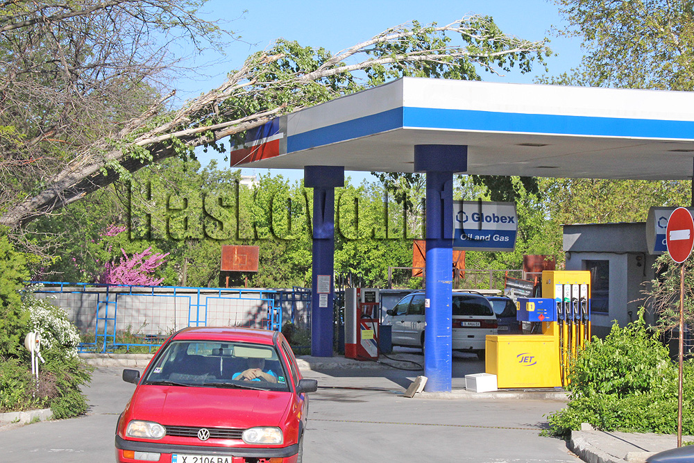 Топола рухна върху бензиностанция в Хасково