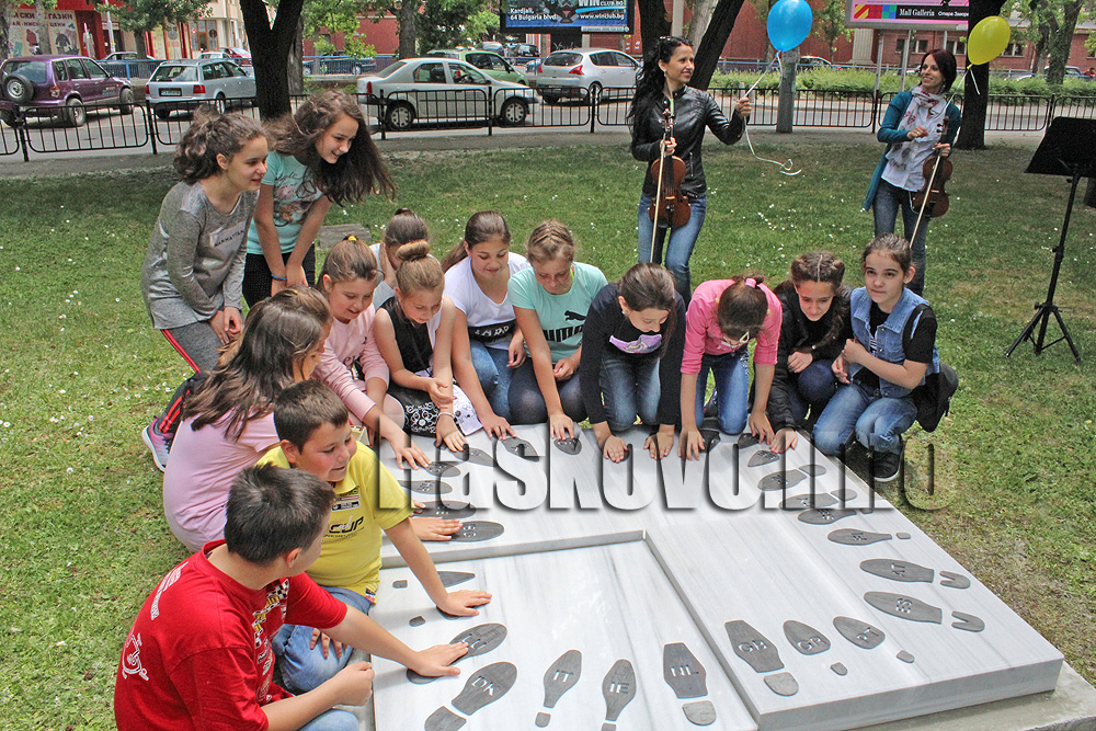 Малко по-късно в парка пред малкия Бизнесцентър зам.-кметът Евгени Консулов и деца откриха арт инсталация – стъпки, на които са изписани страните членки в ЕС.