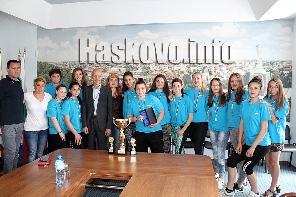 Хандбалистките на „Хасково“, които преди няколко седмици спечелиха шампионската титла при девойките до 19 г. днес бяха посрещнати от кмета Добри Беливанов в общината.
