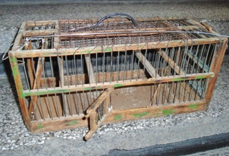 Нарушителят е избягал при появяването им и не е установена самоличността му. На посоченото в сигнала място е открит специално изработен кафез за улов на пойни диви птици, с вероятна цел търговия. Вътре е открита птица от вида „кадънка“ (Carduelis carduelis), наричана още „щиглец“ или „кардарина“. Птичката е била в добро състояние и незабавно е пусната на свобода.