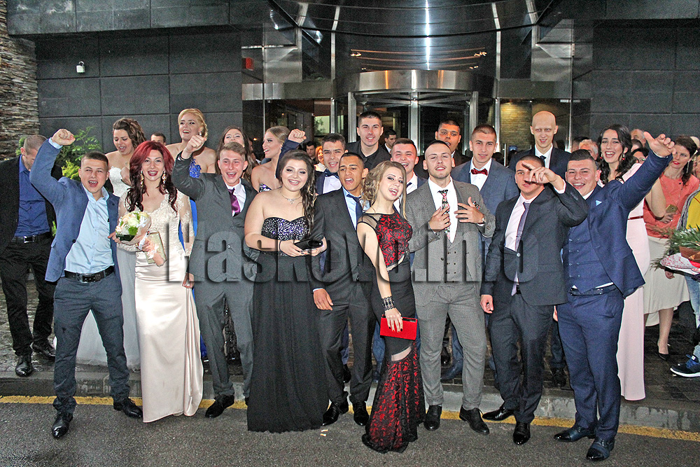 По същото време малко по-надолу се събираха красивите абитуриенти на ПГМЕТ. Гимназията изпраща 54 зрелостници, които започнаха с много настроение своя празник в най-щастливата си вечер.