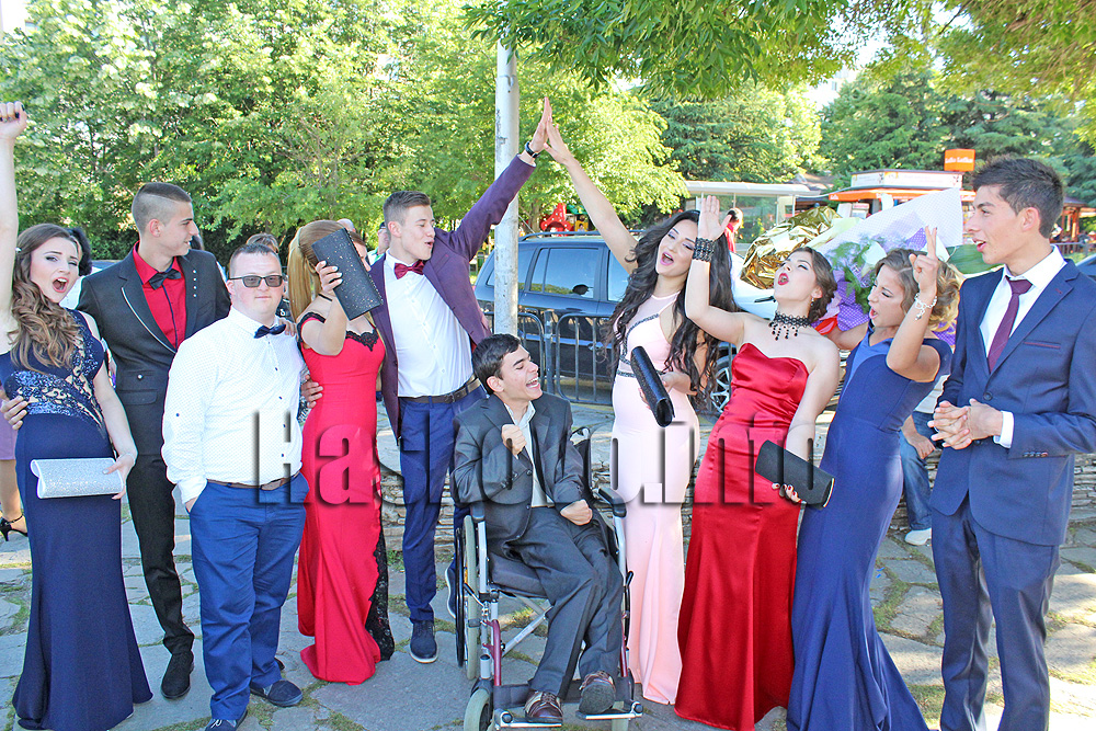 Красивите зрелостници се събраха на входа на Кенана. Директорът Нина Стайкова лично прегърна всеки от дузината си абитуриенти.