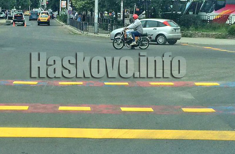 Първият участък, където е нанесена жълтата боя е по булевард „Съединение“ от МБАЛ – Хасково до кръстовището при автогарата. Работата е започнала в 19:30 часа и е продължила до 4:30 часа сутринта.