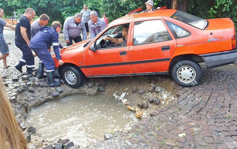 Пороен дъжд се изля късно вчера в Ивайловград, като за 30 минути наводни мазета, а лек автомобил пропадна в огромна яма на улица „Иван Вазов“.