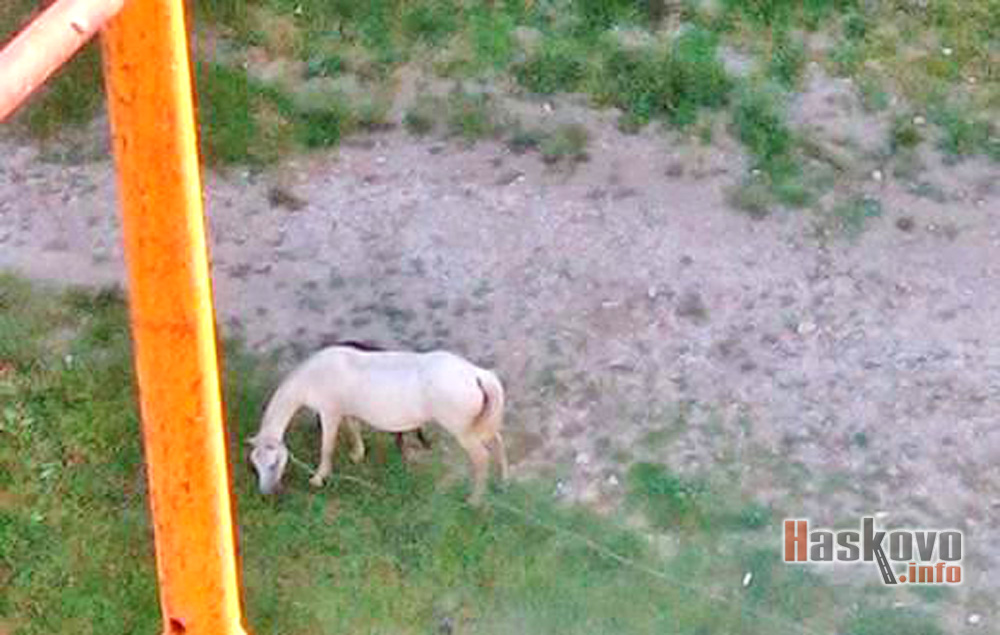 Читатели на Haskovo.info изпратиха снимки на пасящи коне и крави между блокове в хасковския квартал „Орфей“, които сега са в напреднала фаза на санирането.