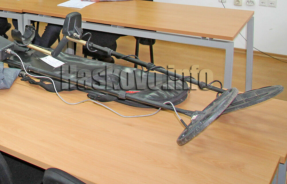 При последвало претърсване в квартира в Стара Загора, ползвана от хасковлията, са намерени и иззети още 5 старинни предмета, 3 старинни монети, 3 детектора за метал и части за металдетектори.