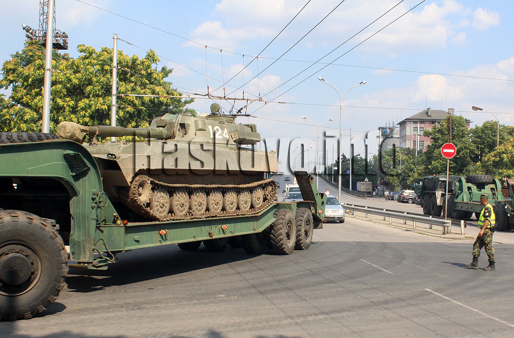 Тежката техника се извозва от учебния полигон в Корен, където се проведе голямо учение на български, американски и сръбски войски. Бронираната техника започна да пристига в Хасково в ранния следобед, като навлизаше по булевард „Освобождение“ и по околовръстното стигаше до булевард „Съединение“ и сточна гара. На възловите места имаше военна полиция, която да регулира движението.