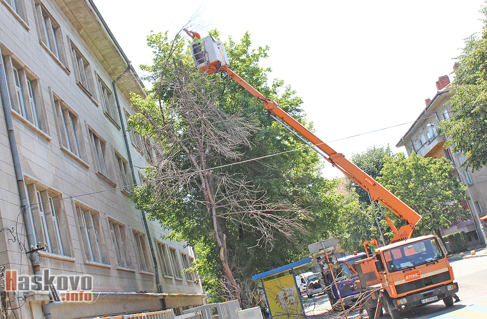 Изсъхнало дърво до оградата на хасковското средно училище „Васил Левски“ беше премахнато от „Екопрогрес“.