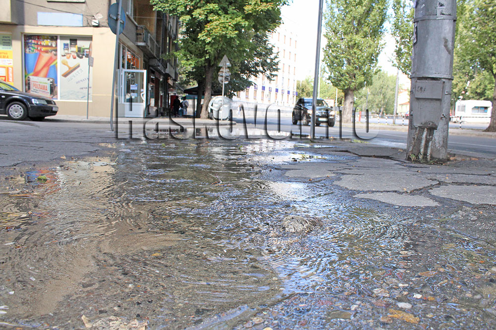 Водата се излива на уличното платно и изтича в шахта. Хората се жалват, че от ВиК не идват да отстранят проблема.