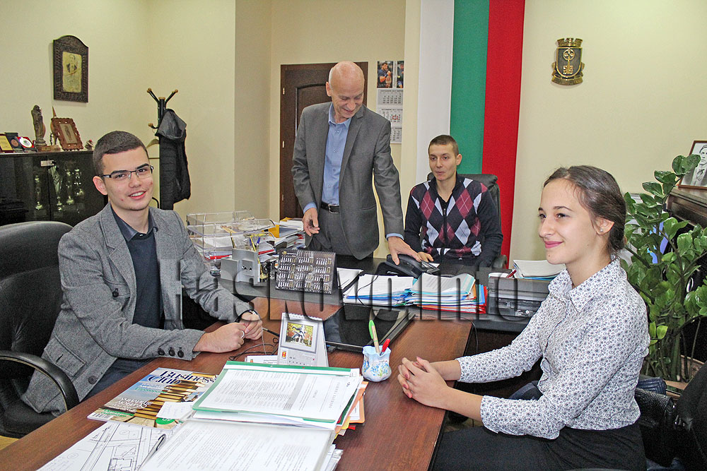 Кмет за днес е зрелостникът от Езиковата Тодор Киров. Работният ден започна с оперативка с кмета Добри Беливанов и зам.-кмета Велин Балкански.