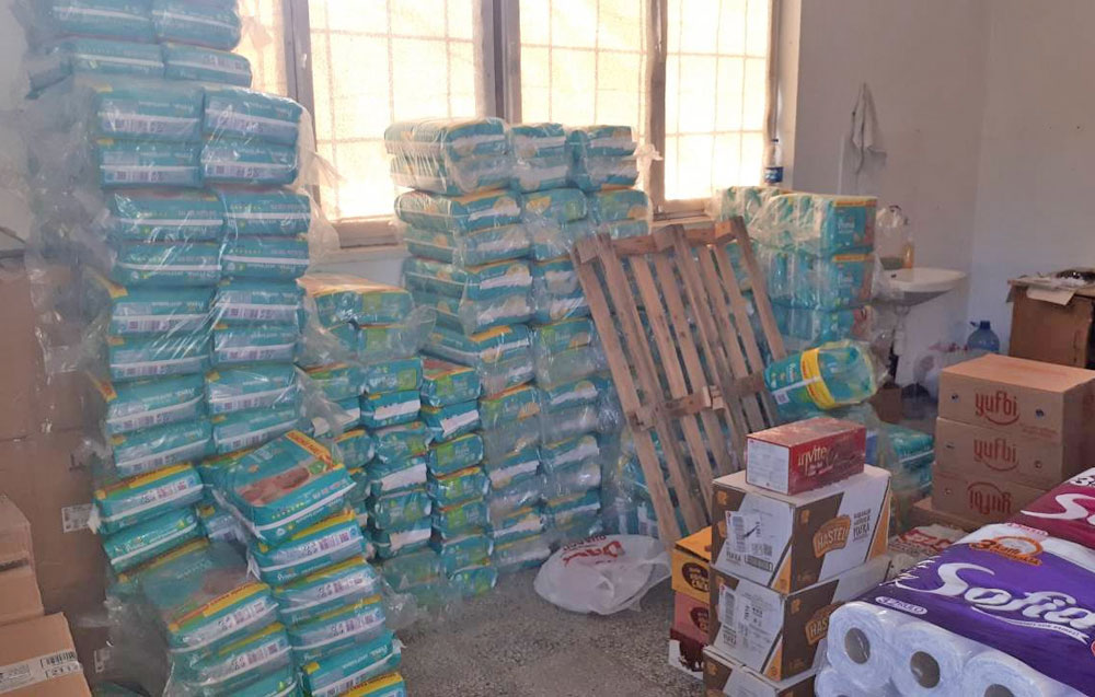 С протокол са предадени близо 900 литра почистващи течни препарати, над 950 кг. прахообразни перилни препарати и 436 пакета памперси. Ползвателката на склада е задържана до 24 ч.