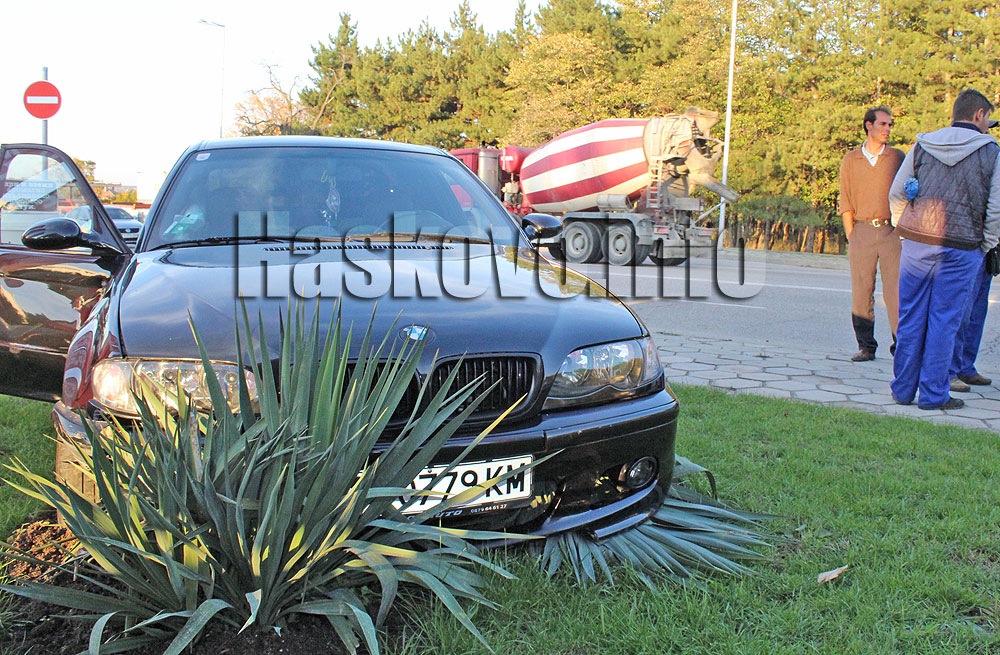 Както Haskovo.info писа, малко след 17 часа на булеварда се удариха двете коли, като БМВ-то заора в градинката на бензиностанцията.