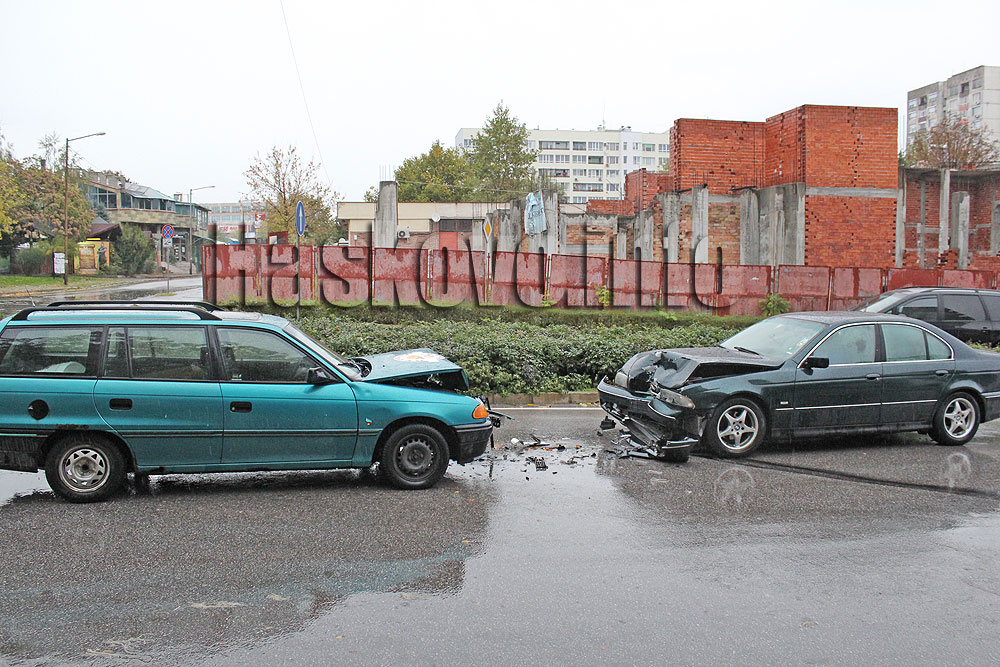 БМВ и Опел катастрофираха на хасковската улица „Ком“ до кръговото на Веспрема.