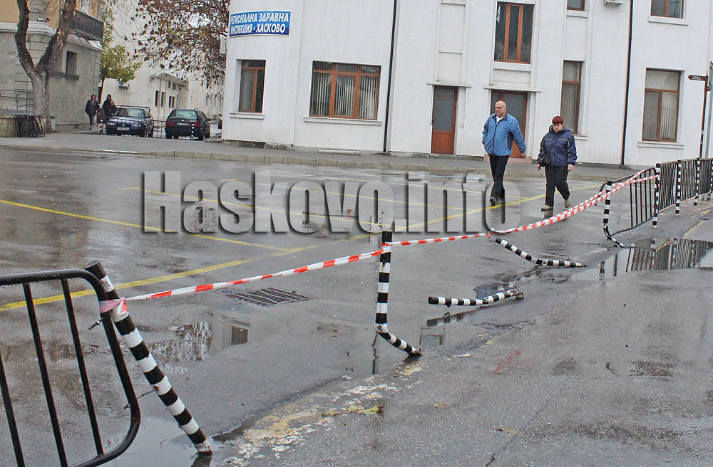 Загражденията от страната на булеварда са разбити. Мястото е обезопасено с ленти.
