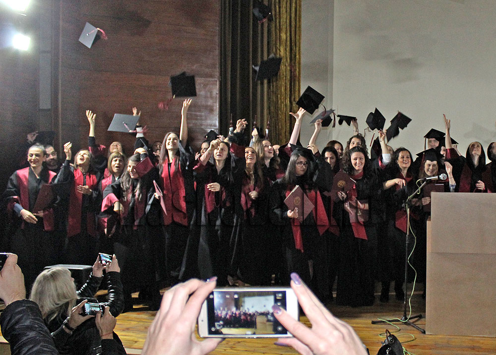 По традиция церемонията по дипломирането завърши с хвърляне на шапките във въздуха.