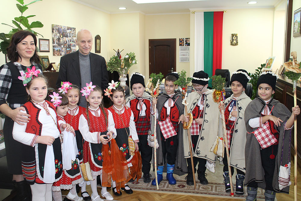 Децата от подготвителната група изпълниха в кметския кабинет коледарски обичай с наричане за здраве, успех и благополучие. Кметът им благодари за прекрасните пожелания и им подари коледарски традиционни торбички с лакомства.
