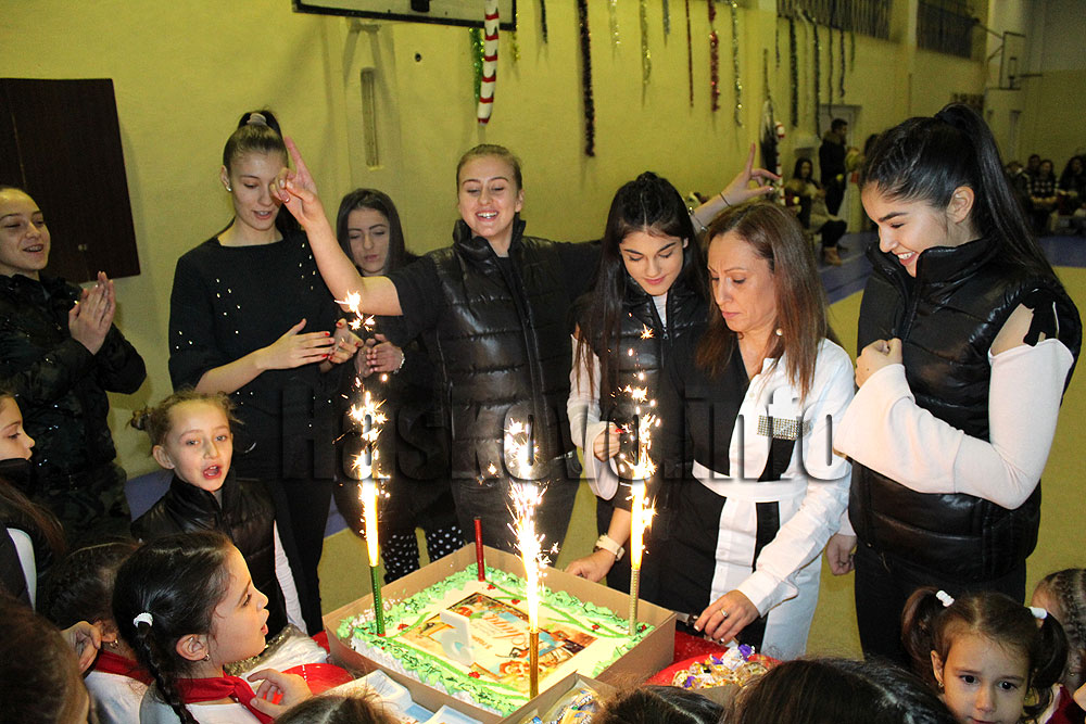 Състезателките на хасковския клуб по художествена гимнастика „Аида“ с президент Яна Михайлова показаха тази вечер в салона на ОУ „Христо Смирненски“ част от шампионските си съчетания на Коледно тържество.