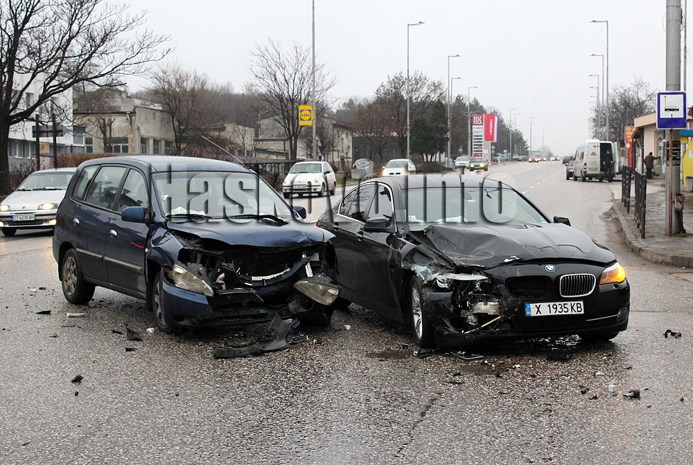 Киа и БМВ катастрофираха в кръстовището на хасковския булевард „Освобождение“ с улица „Бачо Киро“.