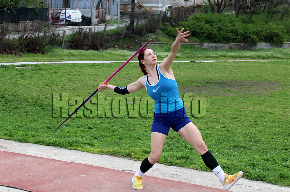 И в навечерието на Великден хасковските лекоатлетки продължават усилени тренировки по хвърляне на копие на стадион „Младост“.