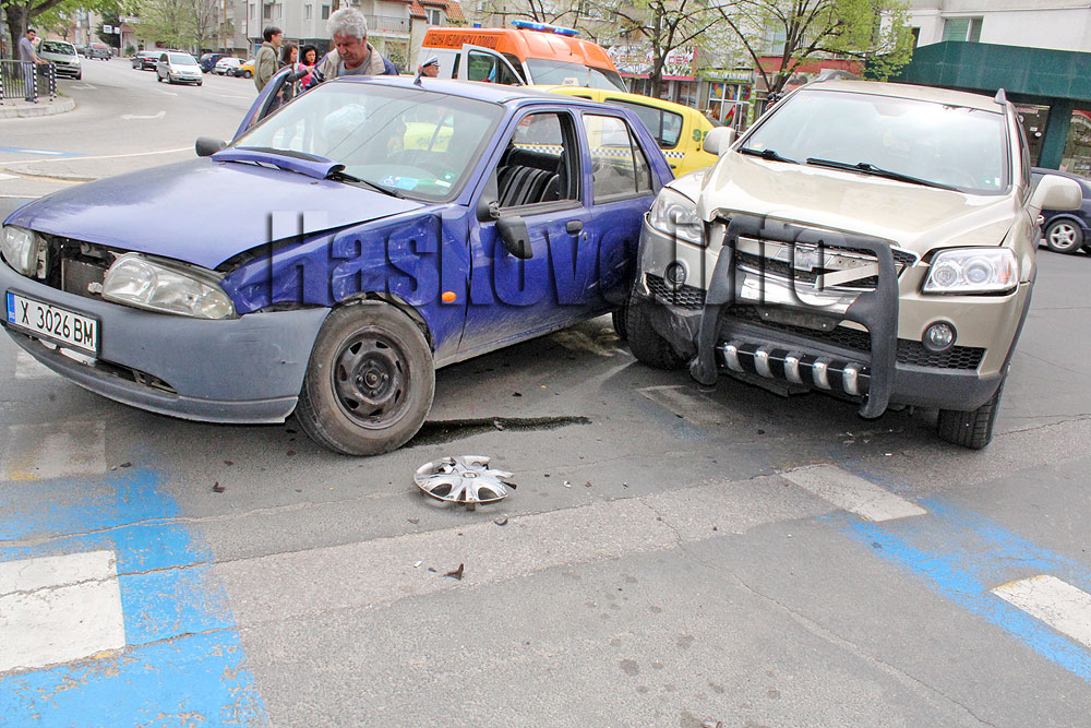 Джип Шевролет и лек автомобил Форд катастрофираха в кръстовището на булевард „Раковски“ с улица „Дунав“ в Хасково.
