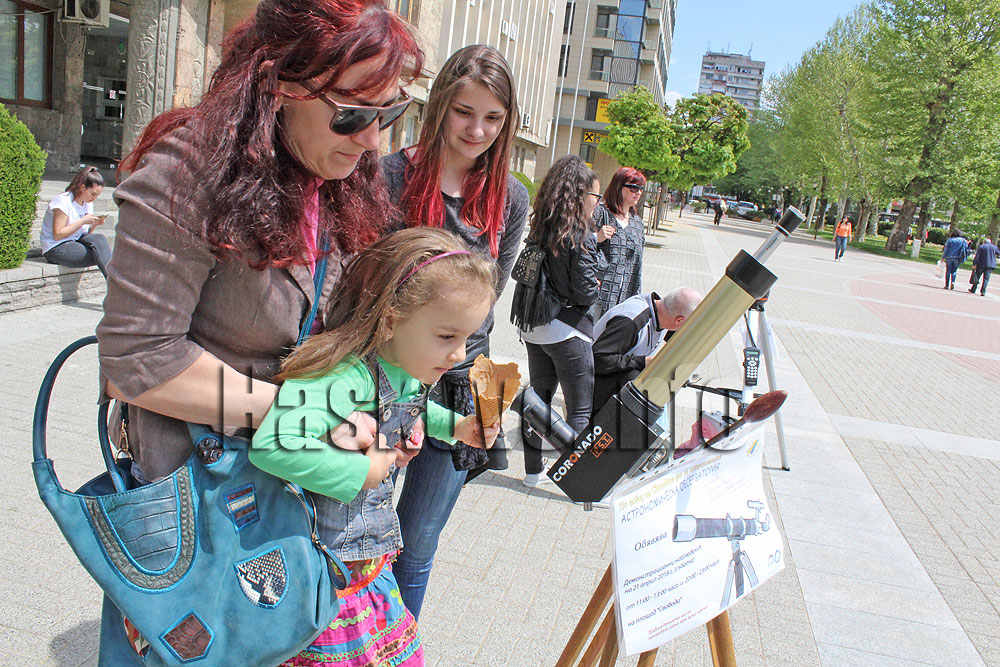 Инициативата е по повод на Международния ден на астрономията. До 13 часа на площад „Свобода“ хасковлии наблюдаваха слънцето през два телескопа. Малки и големи проявиха голям интерес към проявата. За работата с телескопите им помагаха младите астрономи от обсерваторията.