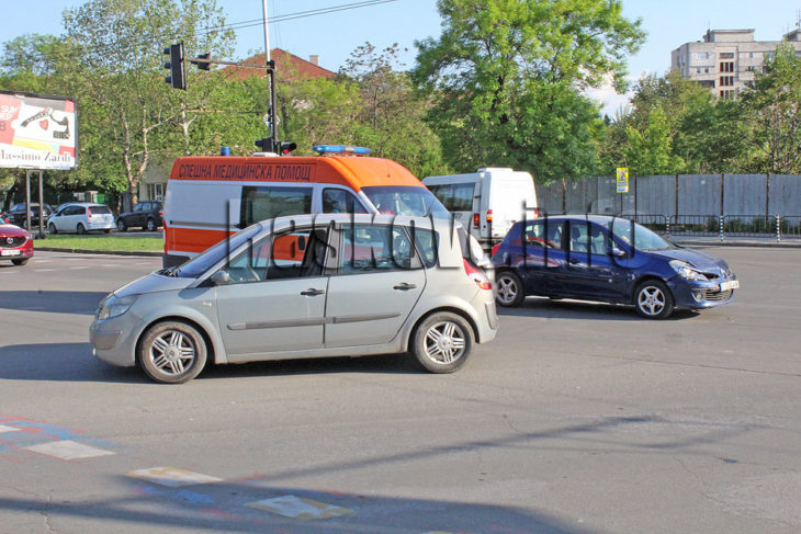 Инцидентът стана около 17:30 часа. Синьото Рено е навлязло в кръстовището по булевард „Съединение“ откъм болницата, докато другото се е движило по булевард „Стефан Стамболов“.