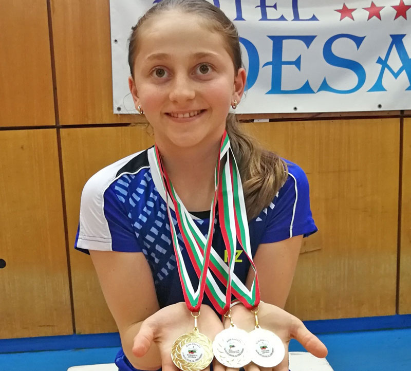 Калояна Налбантова от хасковския бадминтон клуб „Дискавъри“ спечели три златни медала на Държавното първенство за деца до 13 години в Севлиево, съобщи за Haskovo.info треньорът й Желязко Вълков.