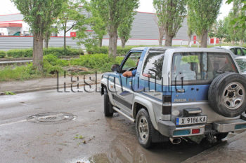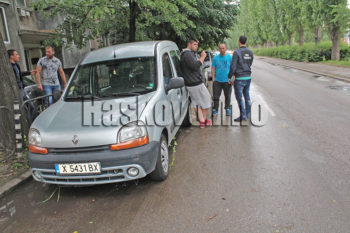 Рено Кангу за малко да падне в реката на булевард „България“ в Хасково, изпратиха снимки читатели на Haskovo.info.