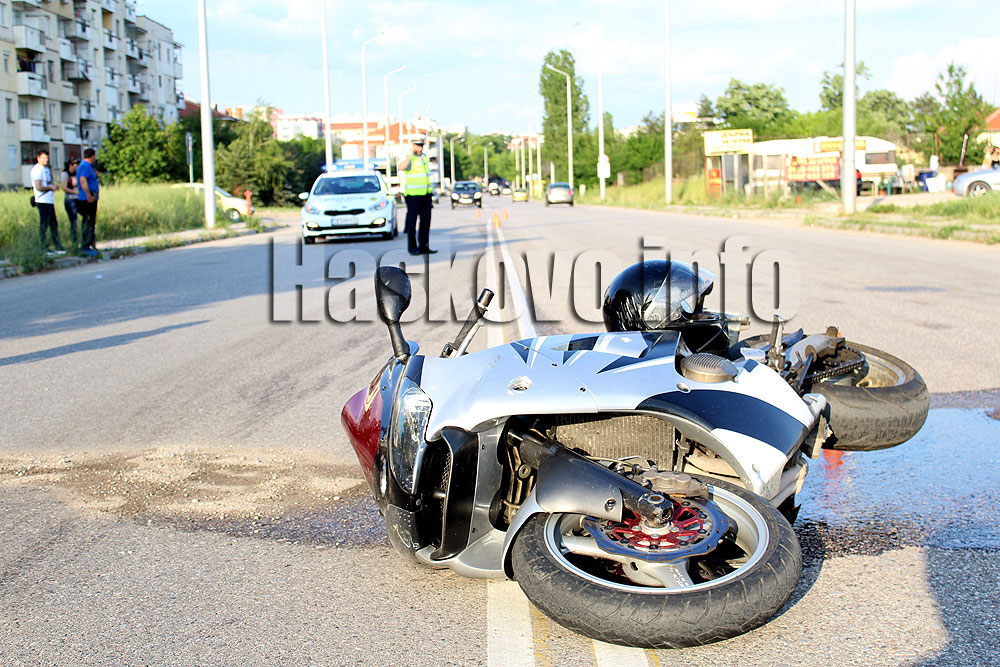 Катастрофа с мотор Кавазаки и лек автомобил Фиат стана тази вечер на пътя за хасковския квартал „Болярово“.