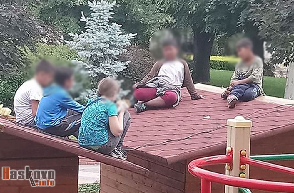 Читатели на Haskovo.info изпратиха снимка на деца качени по покривите на дървените къщички в центъра на Хасково.
