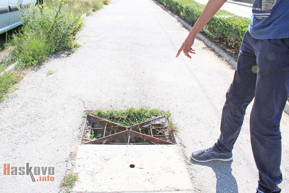 За опасна шахта на тротоара след Военното окръжие на хасковската улица „Ком“ сигнализираха читатели на Haskovo.info.