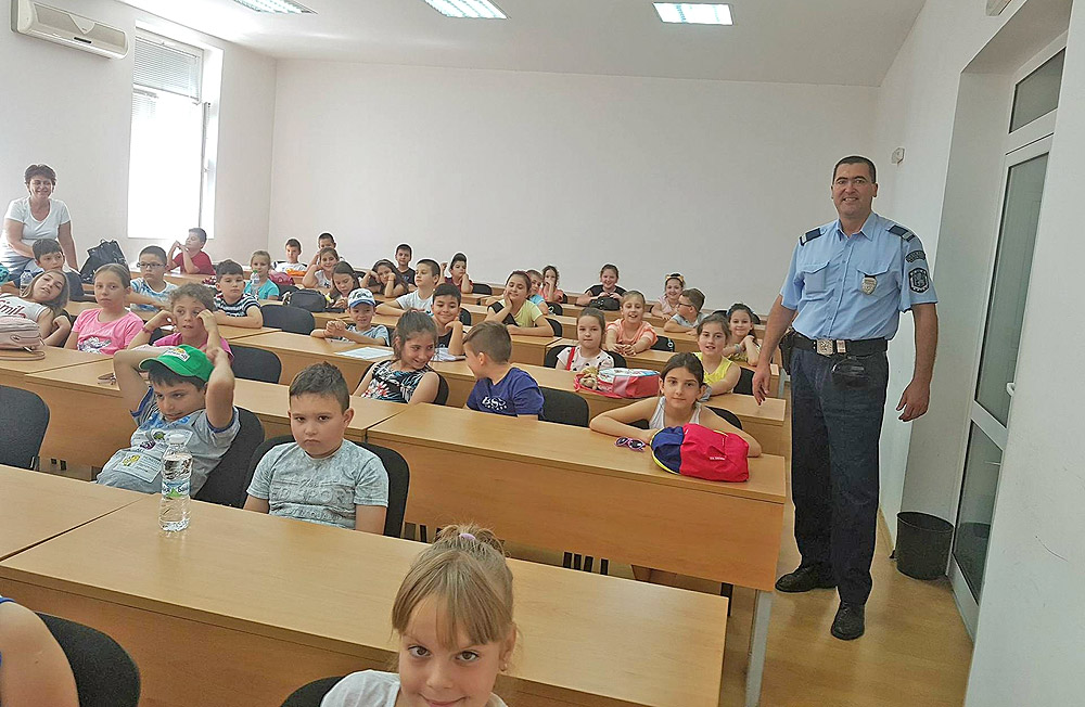 Малчуганите се впечатлиха от униформата на действащите полицаи и от различните атрибути, с които те са оборудвани при провеждане на акции – палки, белезници, стоп палка, радиостанция и др. По време на срещата учениците се запознаха с криминалната обстановка в района и начина на работа на полицаите и инспекторите в Детска педагогическа стая. Служителите на полицията отговориха и на въпроси за цялостната работа на РПУ-то, която има отношение и към противообществените прояви.