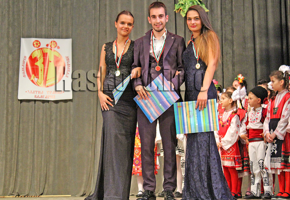 Елена Славова, Пламена Вълчанова и Емануел Стамов са от 13 г. в ансамбъла и с него са спечелили много международни и национални отличия. Ръководителят Златка Тимонова се раздели емоционално с тях като им връчи грамоти и медали на „Златна Тракия“, които се връчват за заслуги.