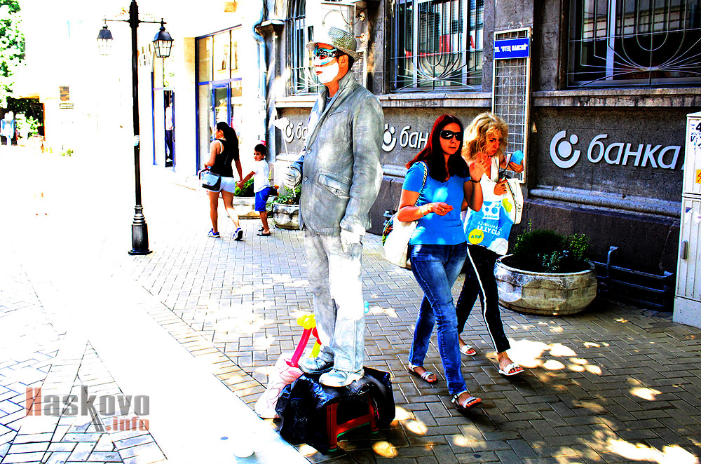 Артист забавлява деца и възрастни по Главната в Хасково.