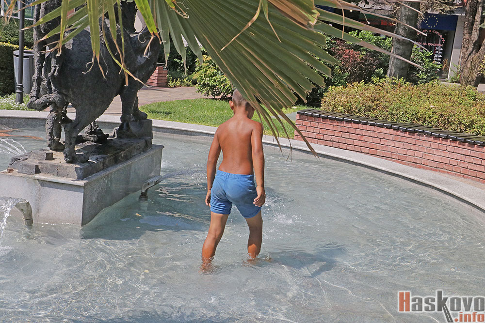 Деца се разхлаждаха по обяд в шадравана срещу театър "Иван Димов" в Хасково.