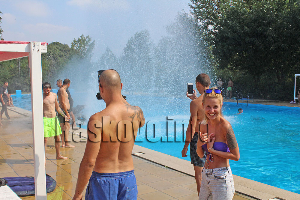Още с пристигането си няколко мотористи започнаха с игрите. Задните гуми на два мотора бяха вкарани във водата на басейна. С форсирането на мощните машини се вдигаха фонтани вода.