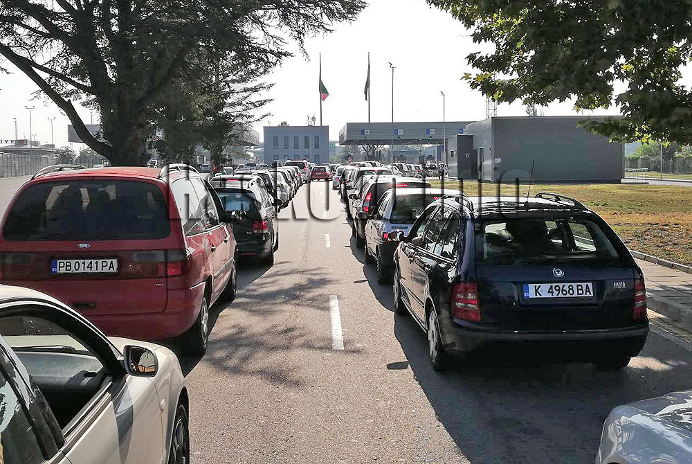 При „Маказа“ от сутринта започна образуването на колони от леки коли на изход. Чакането по обяд отнема до час. Вечерта се очакват колони от коли на вход към България.