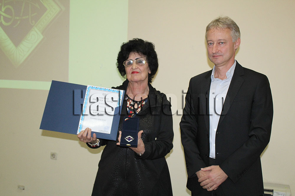 Д-р Ирина Караманова получи наградата си за Лекар на годината в Хасковска област, присъдена й единодушно от Районната лекарска колегия с председател д-р Николай Колев.