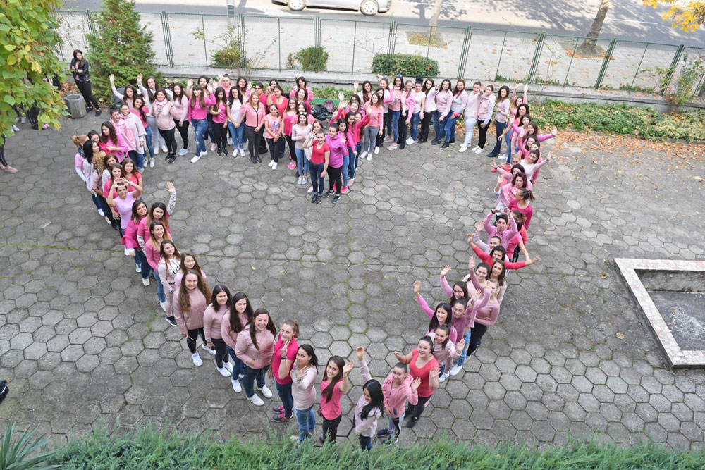 Всички носеха розови тениски и се подредиха под формата на сърце в двора на Медицинския. Посланието е за сърце, преливащо от топлина, обич, подкрепа и съпричастност.