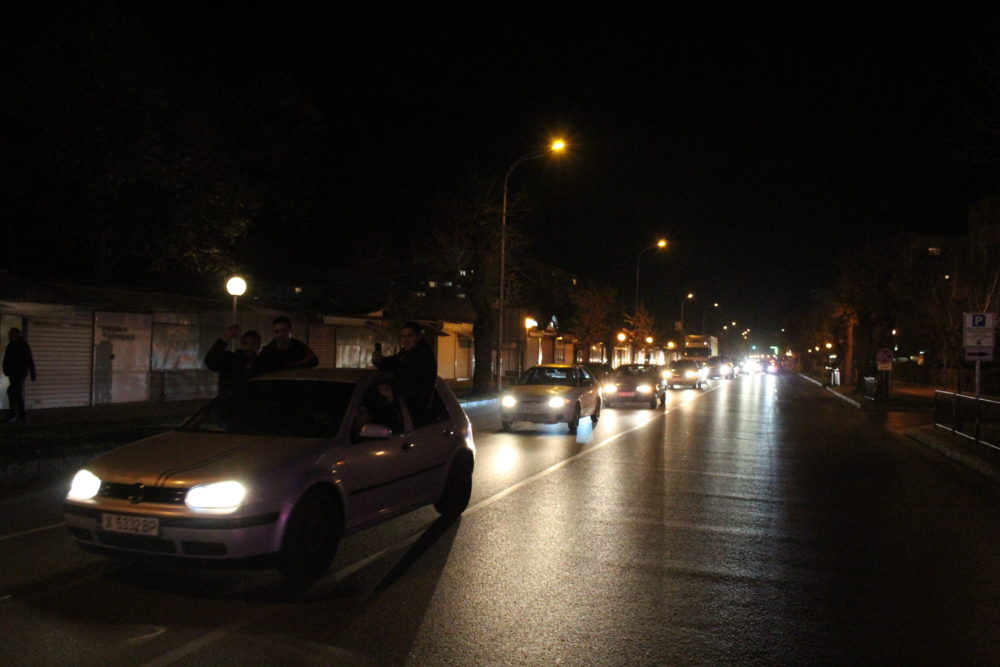 Десетки автомобили с надути клаксони и развети знамена обикаляха основните булеварди на града. Чуваха се и викове „Оставка“. Протестиращите бяха съпровождани от полицейски автомобили.