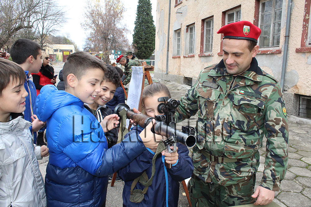 Инициативата е по повод 19 ноември – празник на Сухопътните войски. Първи оръжията в поделението разгледаха четвъртокласници от димитровградското ОУ „Алеко Константинов“.
