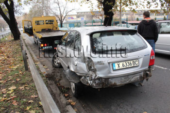 Инцидентът стана в участъка между кръстовищата при Захарна и Цигарена фабрика. От удара Маздата се е забила в мантинелата.